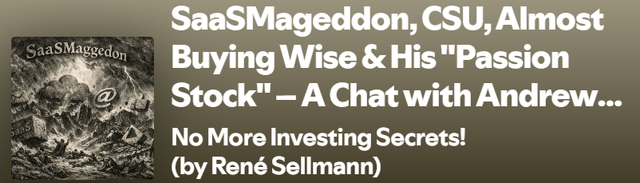 The episode was about Constellation Software, the SaaSmageddon, Wise and much more. You can find it here.