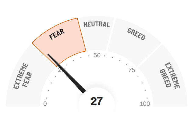 The Greed & Fear Index dropped. It was already in Fear but close to Neutral. It is now close to Extreme Fear.