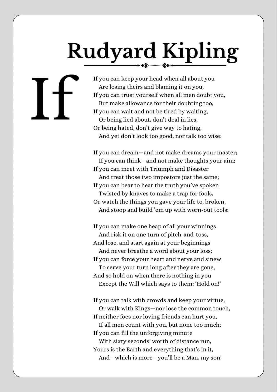 As you probably know, I have a background in linguistics and literature. I have never shared a poem before, but this time, I think it’s very useful. It was written in 1910 by Rudyard Kipling and it’s a father talking to his son. But I think it’s a useful poem for investors as well.
