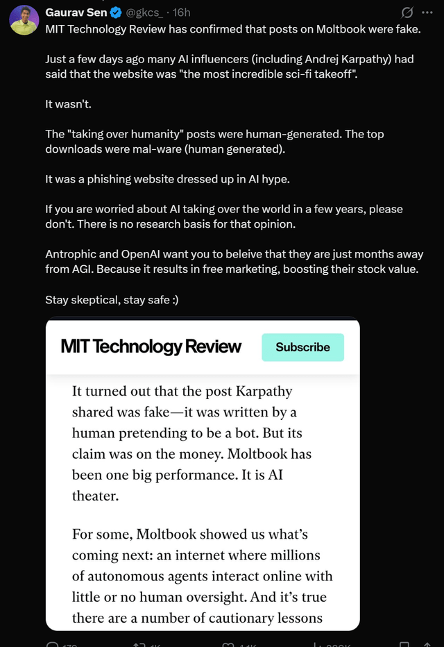 There was quite a bit of controversy last week about Moltbook, similar to a Reddit for Moltbots (previously Clawdbot). This is what I wrote about this last week in the Overview Of The Week: