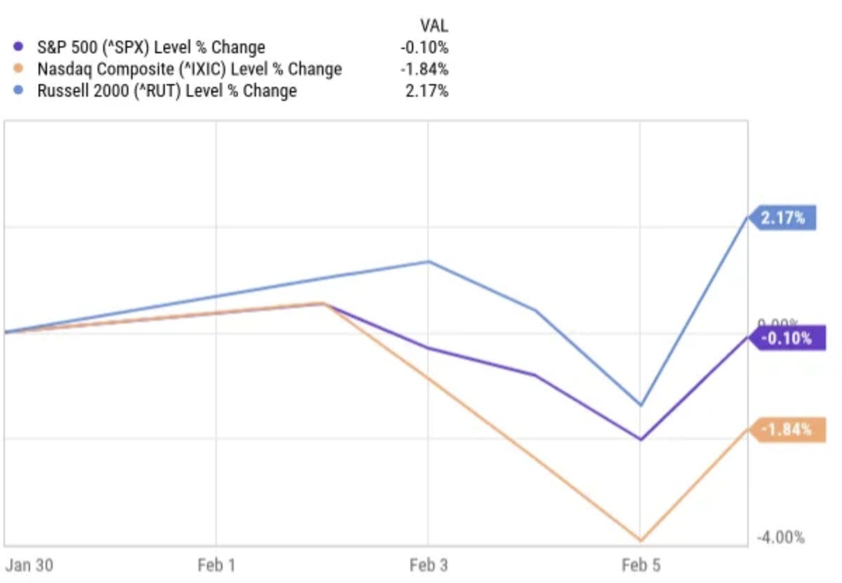 The markets continue to feel weird and divided. Just look at this chart of the indexes over the last week.