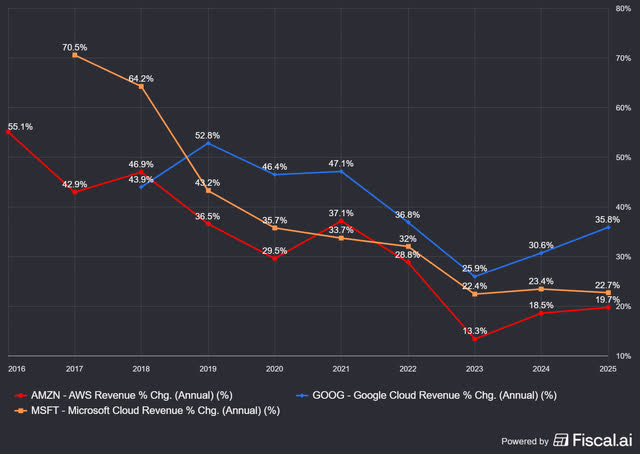 First, you can see that cloud revenue growth for all three increases, but it accelerates for Google Cloud (especially) and AWS, not as much for Azure.