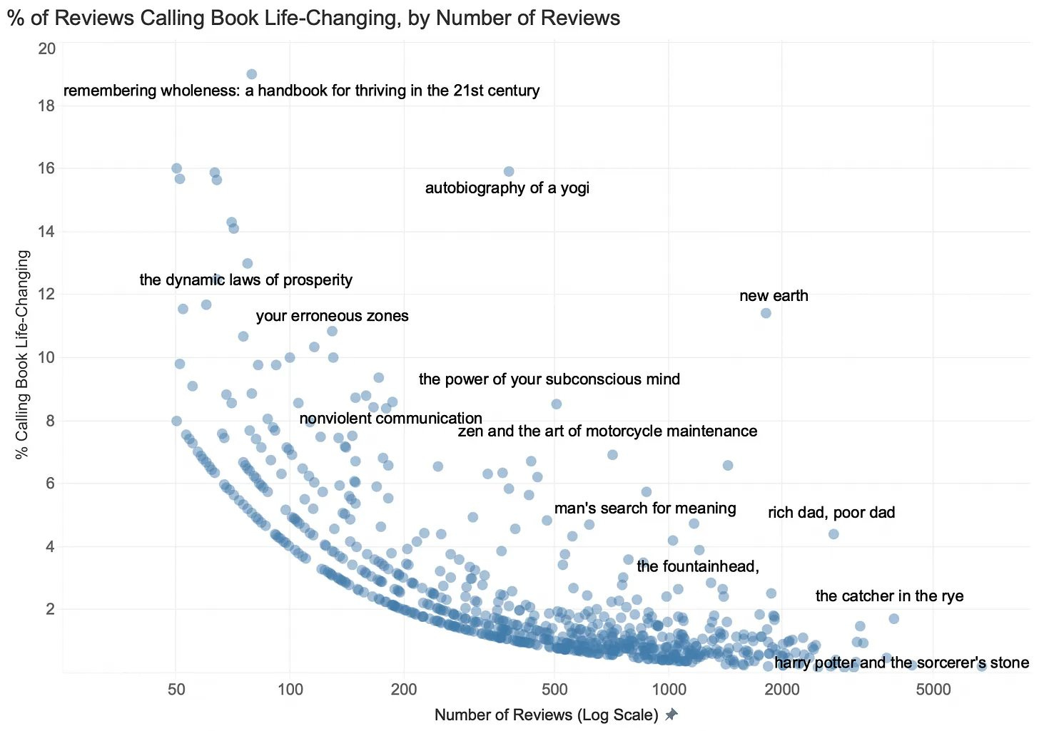 I also found this great book chart. It shows how often the word ‘life-changing’ was used in reviews. Of course, there will be some esoteric books, but you may still find this appealing.
