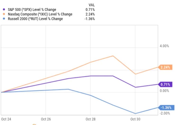 Usually, the different indexes move in a similar manner, but this week, that was not the case. While the Russell 2000 was down 1.36%, the Nasdaq was up 2.24%. The S&P 500 was somewhere in between, with a gain of 0.71%.