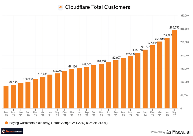 Cloudflare reported a total of 296,000 paying customers, representing an addition of over 30,000 paying customers quarter-over-quarter (+11%) and a year-over-year increase of 33.40%. There were 4,009 customers with ARR (Annual Recurring Revenue) exceeding $ 100,000, representing a 22.78% year-over-year increase. Those are strong numbers.