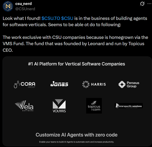 Are you sure? What if Constellation actually has a platform that develops AI agents for the 1,000+ companies it has in vertical market software? This X post shared that.
