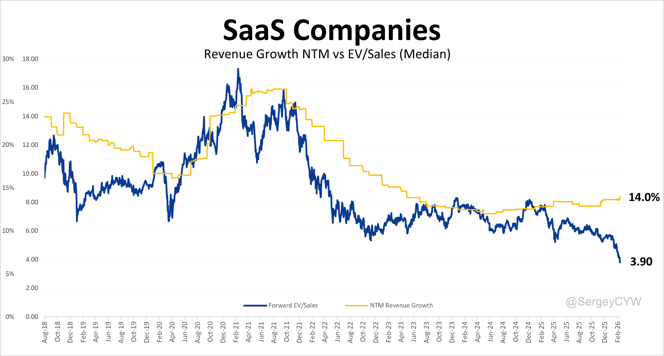 It shows a reacceleration in revenue growth for SaaS companies, while the multiples keep dropping.