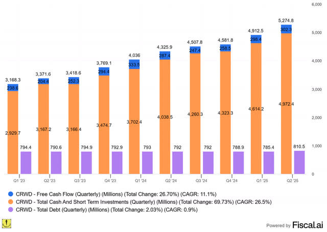 CrowdStrike has a very strong balance sheet, but because of the debt, I keep the score at 9/10.