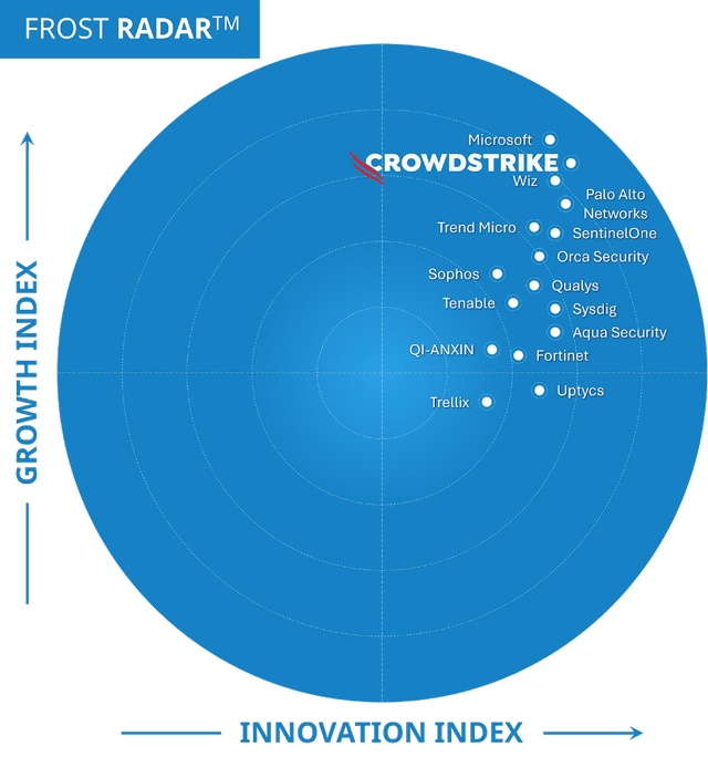 Falcon Cloud Security had a record Q3 Net New ARR. As the cloud security market has matured, merely having “posture” (checking and alerting if security settings are correct) is no longer sufficient. Companies need “active” defense delivered at runtime, so that if a hacker attempts to execute a malicious command, it can be stopped immediately. Citing the Frost and Sullivan CWP Report, CrowdStrike was named the leader for Cloud Workload Protection.