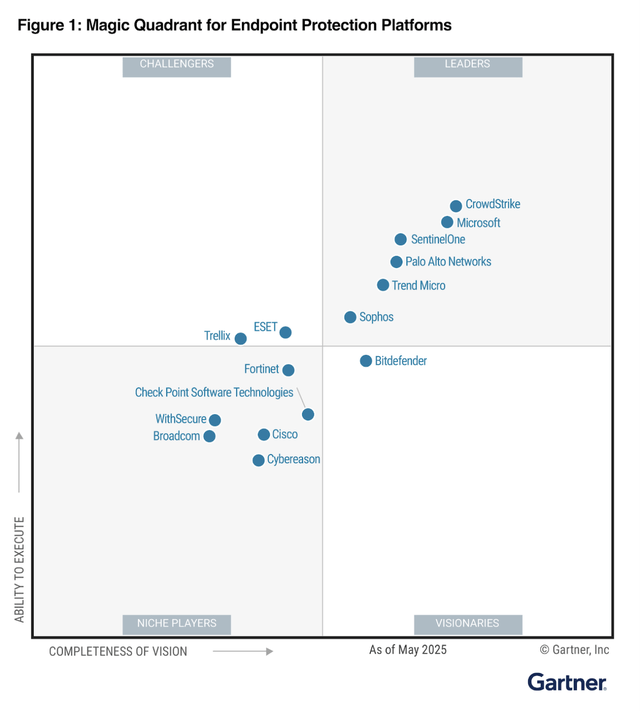 For comparison, their more mature Endpoint Protection platform remains firmly in the “Leader” quadrant.