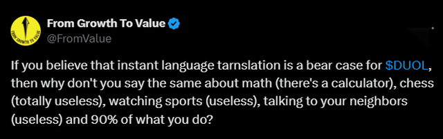 This quarter, Duolingo started posting unhinged content again, which should help with increasing DAUs moving forward. Quote from management: