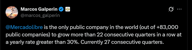 Marcos Galperin, the founder and (still) CEO of Mercado Libre (until the end of this year), posted this on X.