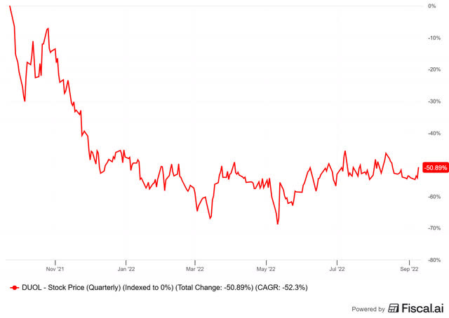 But when I picked Duolingo, the stock traded at $93 and it was down 50% from its top just a year before.