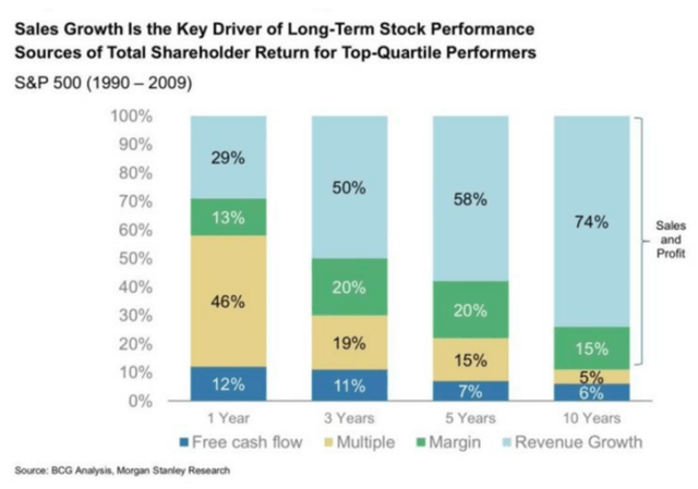 The conclusion of this chart is simple. Revenue growth is by far the most important contributor to long-term successful investing.