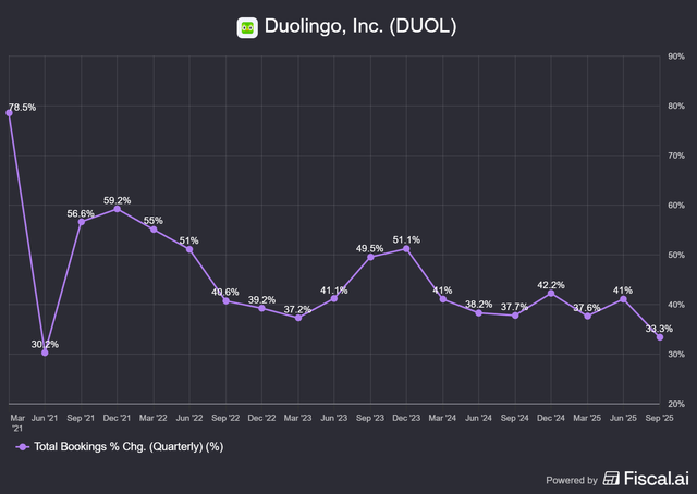 Bookings grew 33%, a notable step down from the previous quarter.