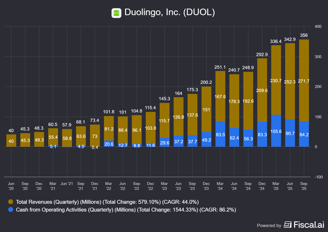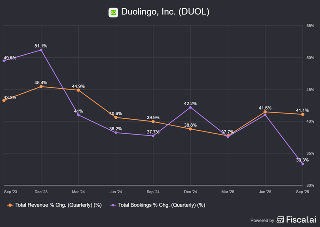 So, worldwide, Duolingo is the only company to have a streak of 22 consecutive quarters of 30%+ revenue growth, alongside Hims & Hers, and trails only Mercado Libre. From 83,000 companies.