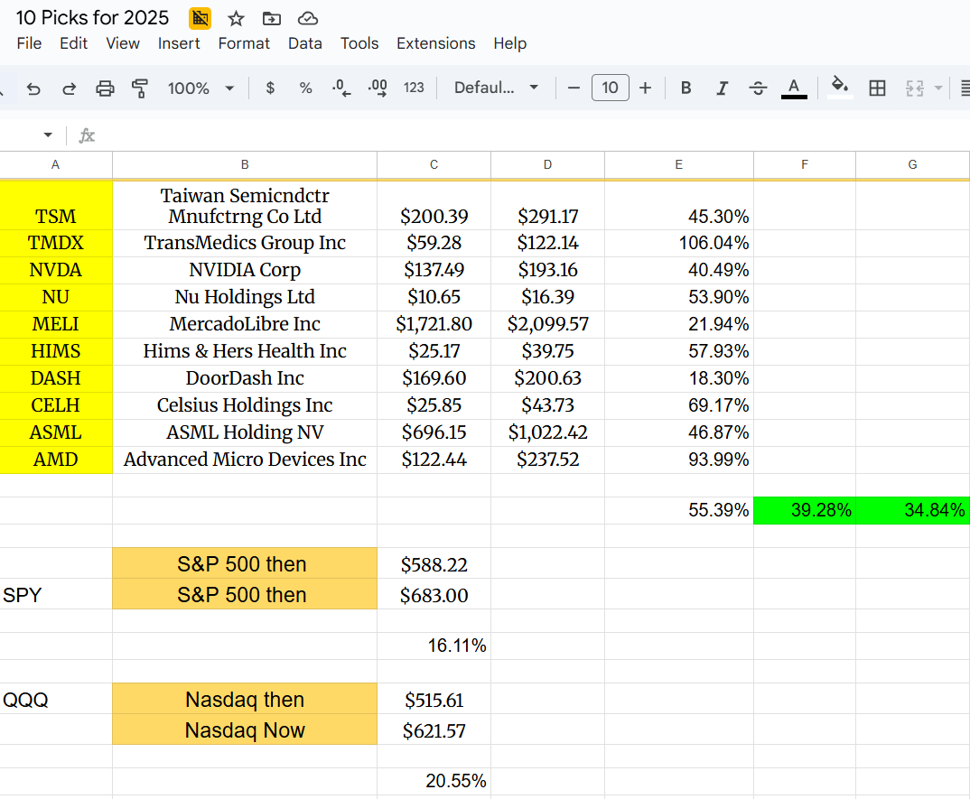 You missed so much already. My Best Buys Now beat the S&P 500 by 30% per stock on average. My Best Stocks for 2025 are up 55.39%, beating the S&P by about 40% and the Nasdaq by 35%.