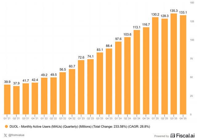 As you can see, from the first quarter of 2025 to the fourth quarter, there has been no meaningful growth in MAUs and for the second quarter out of three, the number of MAUs was down compared to the previous quarter. That doesn’t look great and it only confirms what management said, that MAUs need attention urgently.