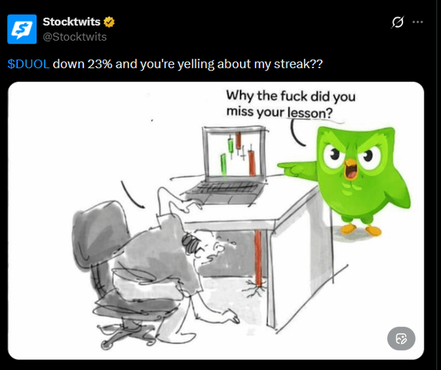 Duolingo dropped a lot over the last few months and even more after its earnings. Here’s a meme about that.