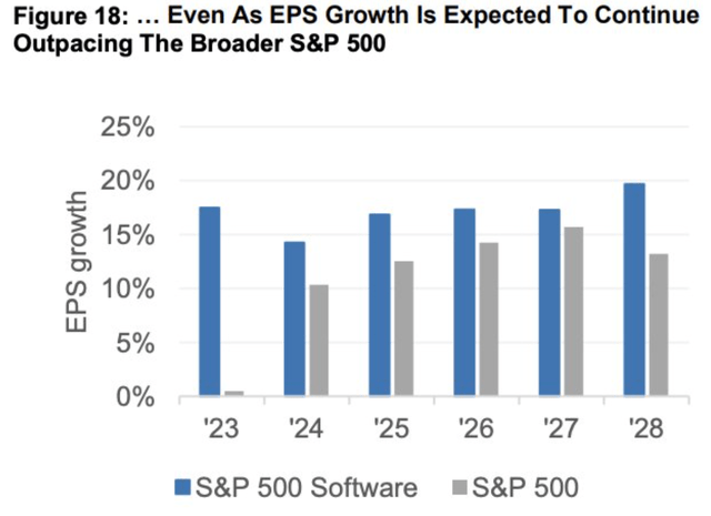 Despite this, software’s EPS are expected to outgrow the S&P 500 for the next few years.