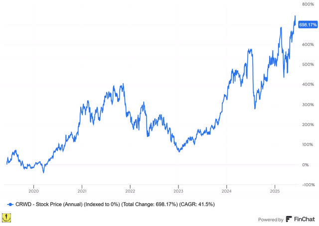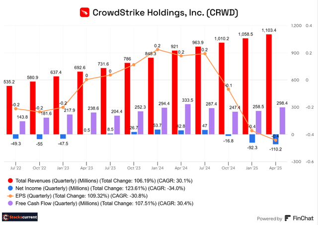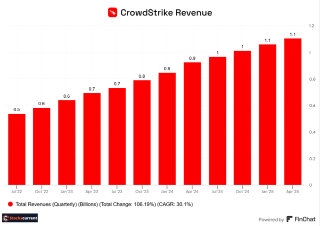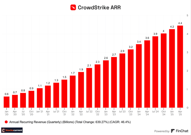 To put that in perspective, CrowdStrike’s ARR has skyrocketed from $700 million to $4.44 billion in just five years, representing a 46.5% compound annual growth rate. That level of sustained growth at scale is nothing short of remarkable.