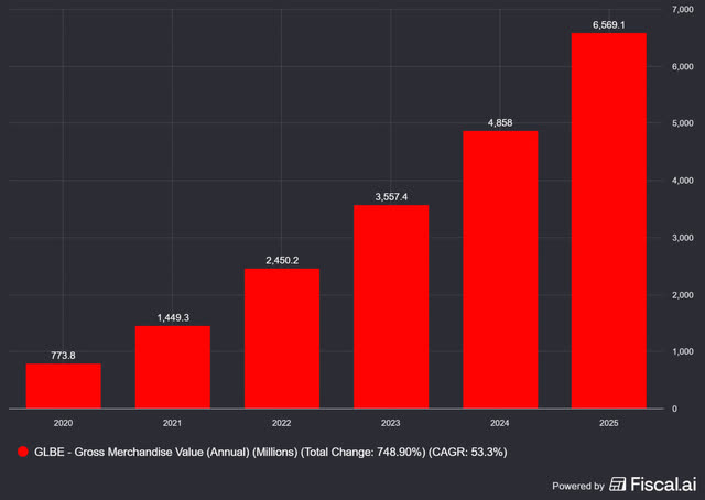 Gross Merchandise Volume (the total dollar amount of everything sold on the platform) increased 37.8% year-over-year to $2.361 billion, bringing the total GMV for 2025 to $6.569 billion, representing 35% annual growth.