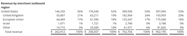 Another tailwind can be found in foreign exchange (’FX’). As Global-e is in the middle of international transactions, the FX part of its business cannot be underestimated. Global-e collects revenue globally, but reports in USD.