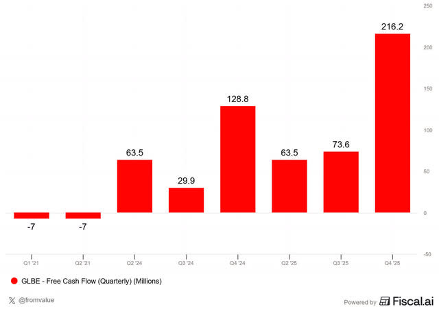 Cash generation remains strong, with $216.2 million in free cash flow generated in Q4.