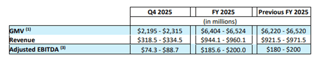 The company expects GMV growth of 28.6% to 34%, revenue growth of 25.8% to 32%, and adjusted EBITDA growth of 30% to 43%.
