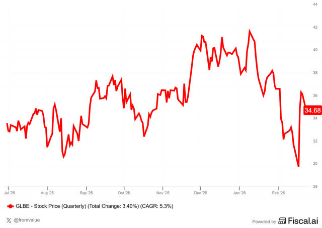 Global-e’s stock recently experienced some weakness, in line with broader market trends, but moved about 15% to $36 following the earnings release. It’s down a little bit to $34.68 at the moment of writing.