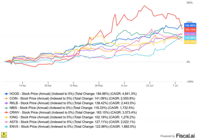 It's not 2021 yet, but it seems to be getting closer. Crypto is hot, momentum stocks with no revenue almost tripled over the last year (I'm looking at you, AST Spacemobile) and I see too many people on X sharing their year-to-date gains. If you think the above stocks have jumped a lot, they are not among the leaders. Just look at these eight stock. They all more than doubled in just a few months.