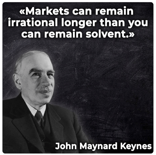 We also know that the market can stay irrational longer than you think. Or in the words of the famous economist John Maynard Keynes: