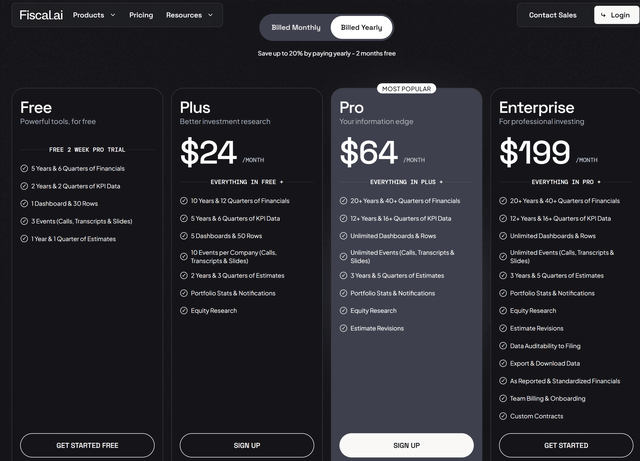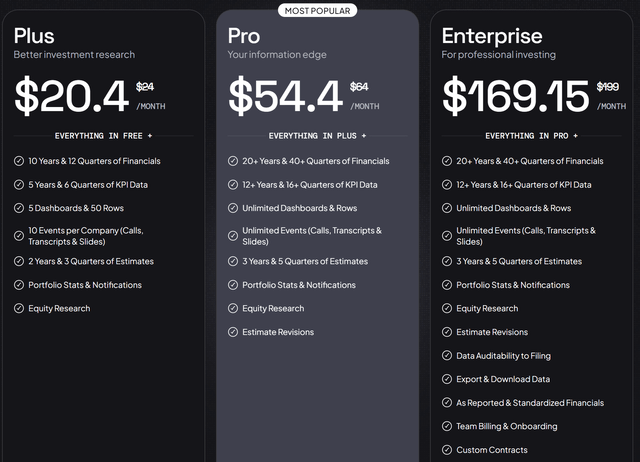 Do you know which other service has that as well? Bloomberg. There, you pay $2000 per month. For Fiscal ai, these are the tiers.