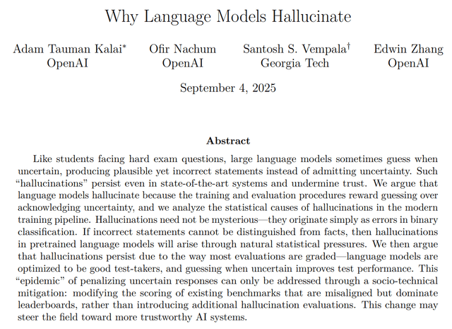 This week, there was a publication from OpenAI about hallucinations. We have all experienced them. Where ChatGPT doesn't find an answer, it sometimes just makes things up.