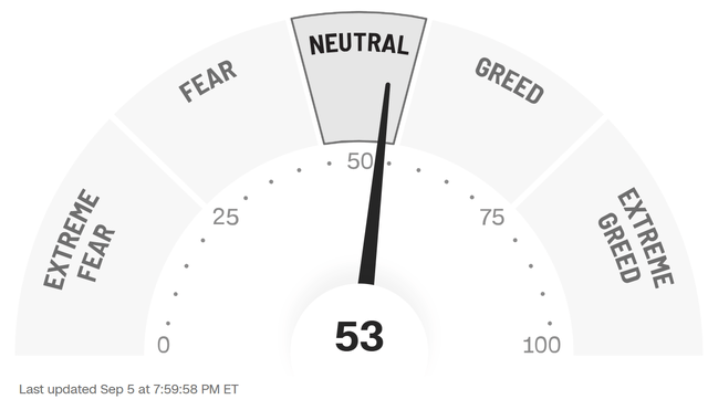 Let's check how the Greed & Fear Index looks. Weirdly enough, even though the indexes were up, the Greed & Fear index dropped from Greed to Neutral.