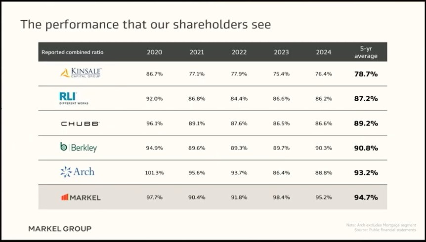 I have already shared this earlier, but I want to show you how exceptional this is. This table was shown at the Markel Brunch in Omaha in May 2025. See how much better Kinsale already does here, with 78.7%. Now it was, and I want to repeat this, 71.7%. That’s just mind-blowing.
