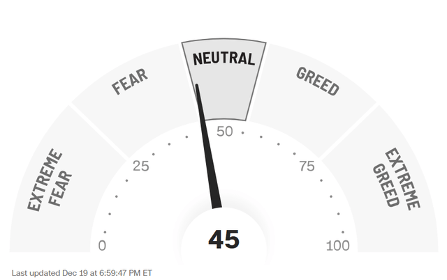 The Greed & Fear Index inched up from Fear to Neutral territory.