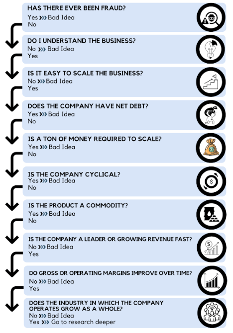 Sometimes, people ask me how I can flip through so many stocks. Over time, you develop a process that you go through very fast without making it explicit. In this visual, I tried to make it explicit.