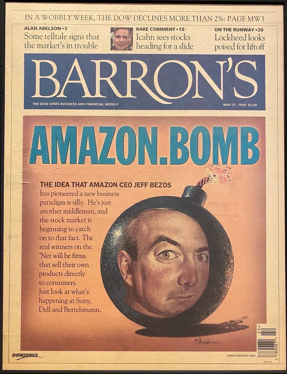 Of course, Bezos is now much more respected, but back then, he was often controversial. You might remember the headline: Amazon.BOMB when the dot-com bubble burst. This is what the newspaper article said under that infamous title: “The idea that Amazon CEO Jeff Bezos has pioneered a new business paradigm is silly.”