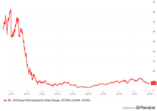 At just 8x EV/gross profit, Sea looks cheap, even cheaper than April, when the whole stock market dropped because of the tariffs of ‘Liberation Day.’