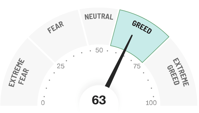 The Greed & Fear Index remained in Greed territory and barely moved.