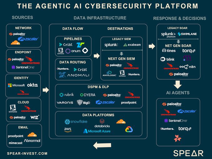The agentic AI cybersecurity market is expected to reach $40B by 2030. That means a CAGR of 40%. Cybersecurity for AI agents will be extremely important. These are the players in the field.