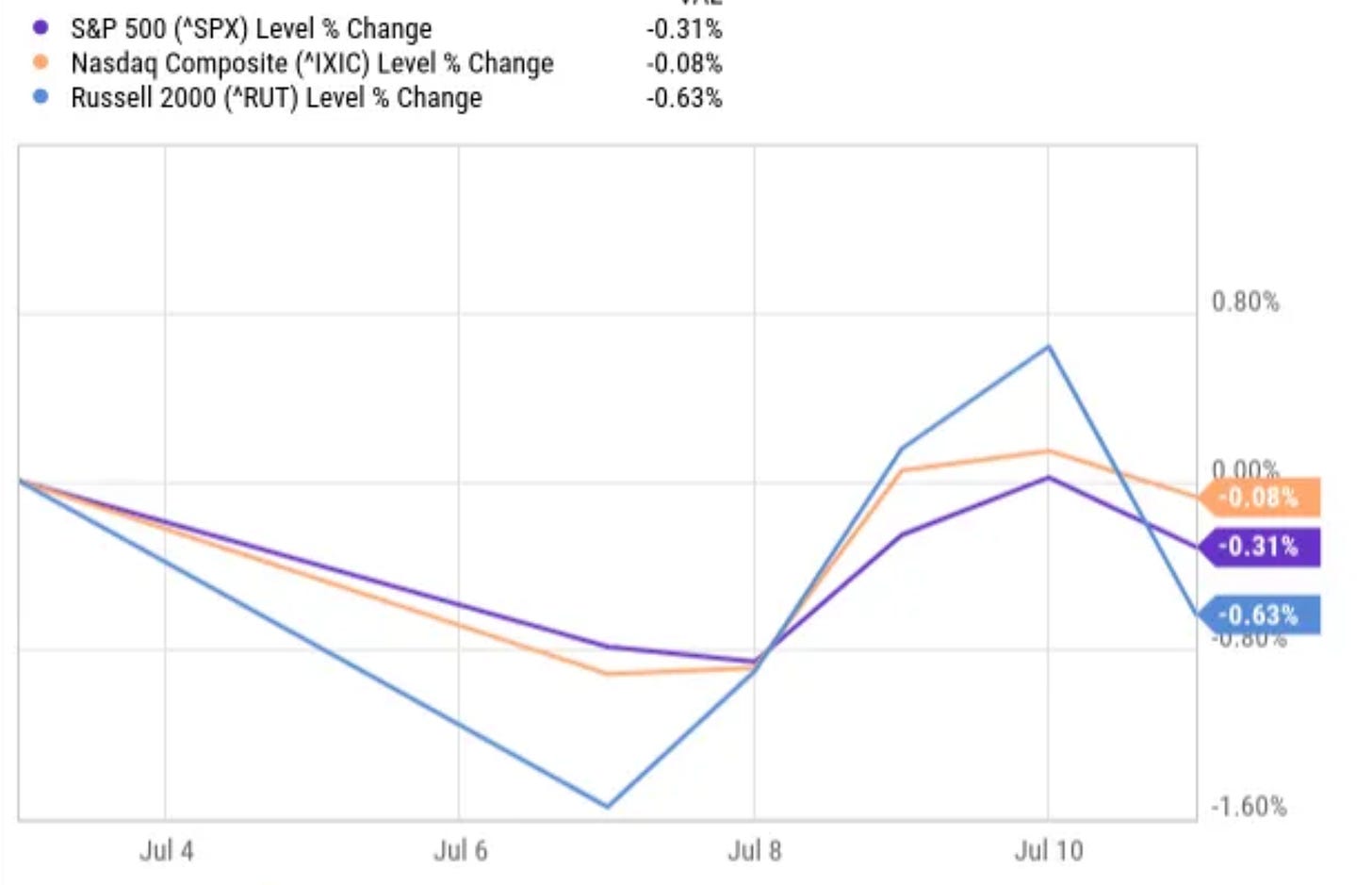 After weeks of markets shooting up, this week, the indexes were down a little bit. The Nasdaq was down just 0.08%, the S&P 500 0.31% and the Russell 2000, which is usually more volatile, was down 0.63%.