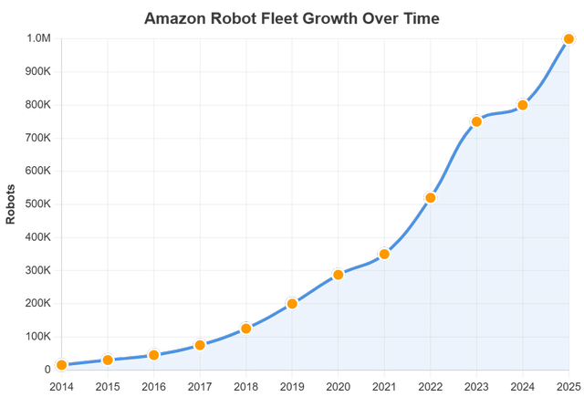 A week ago, Amazon launched its 1 millionth robot, up from zero in 2014.