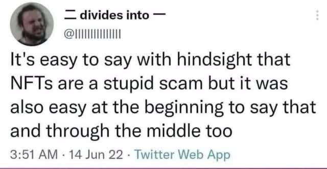 Now that the situation is starting to resemble 2021 a little bit (nuance is important here), let's discuss NFTs, the 2020-2021 craze surrounding the "ownership" of digital products, such as the Bored Apes.