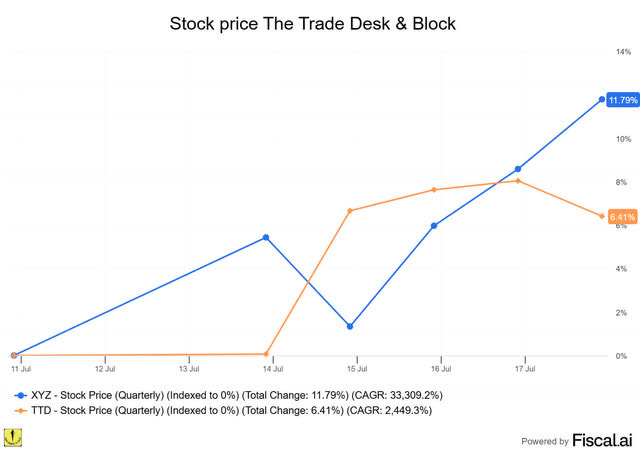 The additions had an influence on the stock price of both stocks. The Trade Desk was up 6.41%, and Block was up 11.79% this week.