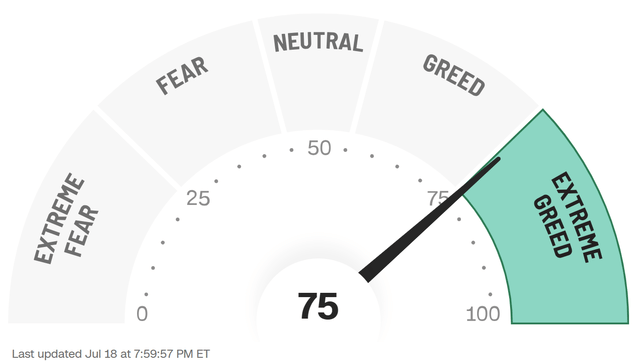The Greed & Fear Index remained at the exact same score (75) and remained in Extreme Greed in that way for the third week in a row.