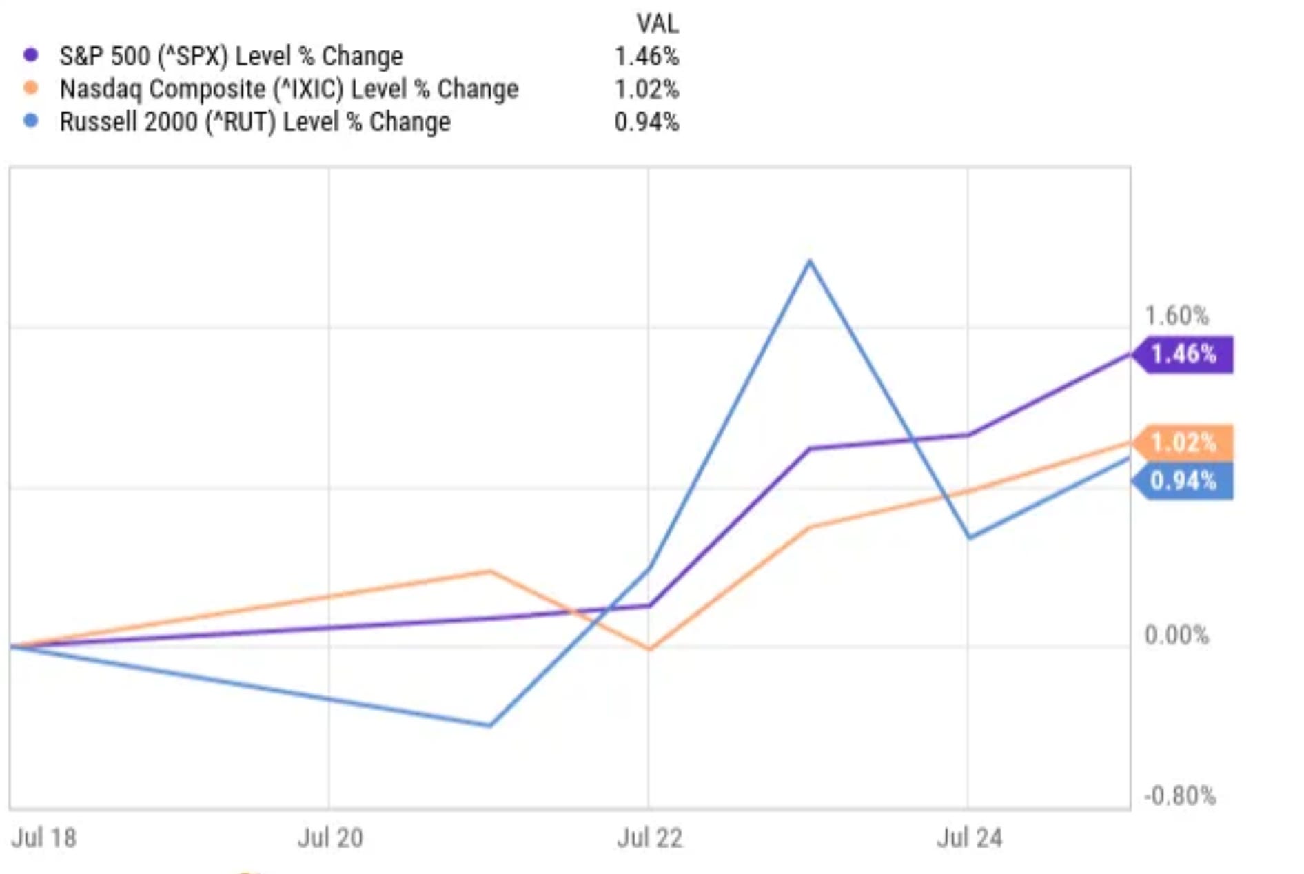 It's almost the same every week in the last three months: the markets were up again this week. The Russell 2000 was up 0.94%, the Nasdaq 1.02% and the S&P 500 1.46%.