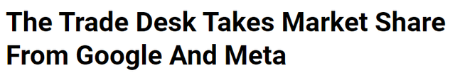 If you know that the walled gardens are Meta Platforms and Alphabet's Google, I think the title of one of my previous articles on The Trade Desk was correct.