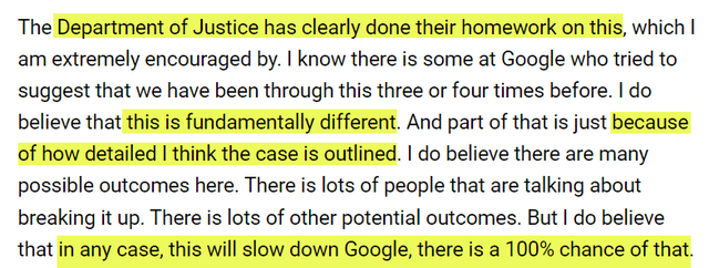 According to Green, this time, it's different when it comes to the case against Google. (Just like Green, I refer to Google, not Alphabet, because the ad business is entirely in the Google branch).